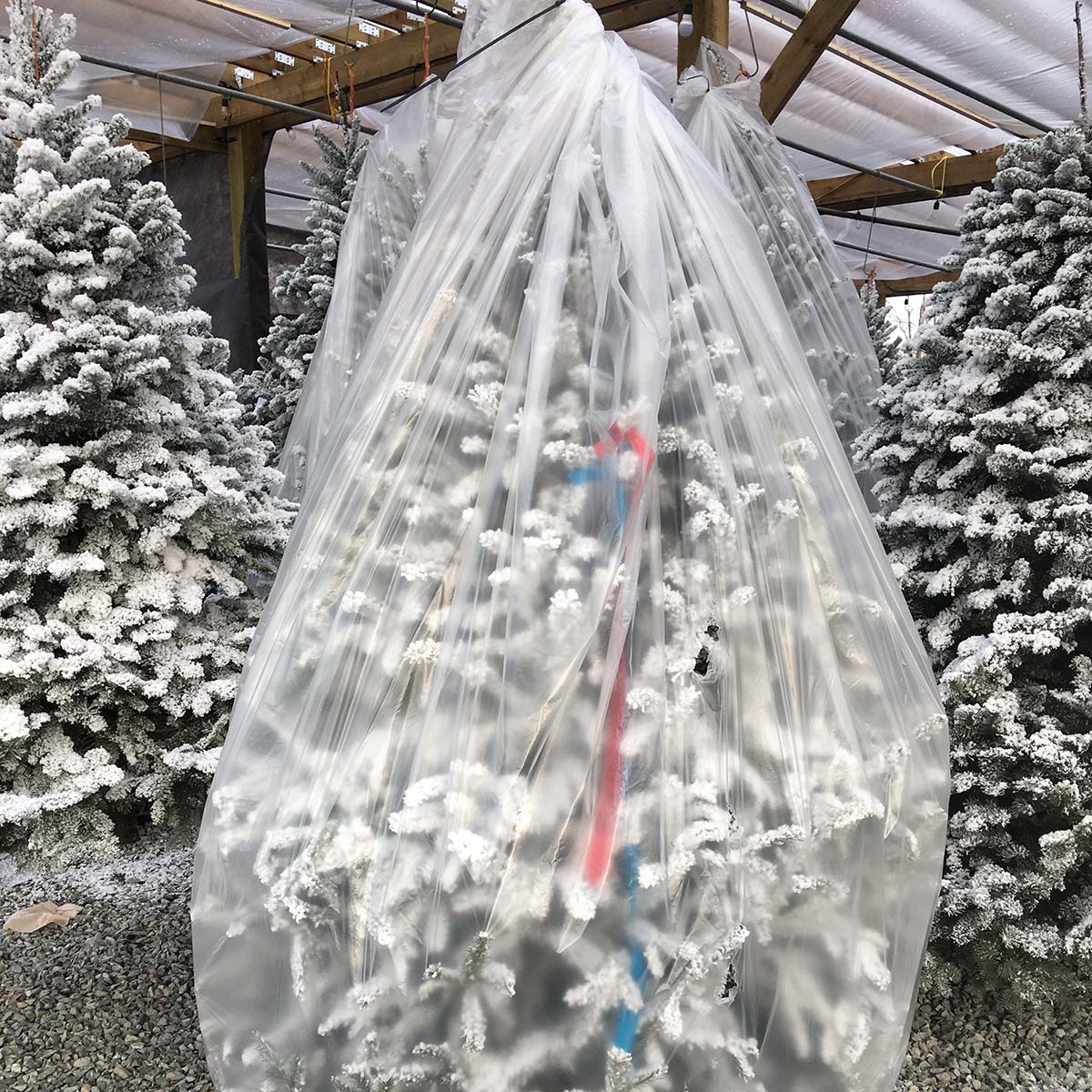 No, we have a few different services when it comes to flocked trees. We have a custom flock where you go and pick your tree, the heaviness of the flock, and if you want to add anything to it. Then we have a service where you tell us what tree you want and we flock it to our standard flocked look. This is a great option if you want the standard look but you are a bit more particular about the type of tree you want. Then the last option is that each week, we flock a few extras from the most popular size and type and those are available for retail sale. This option works on a first come first serve basis so if you are interested make sure you come to the nursery on Thursday or Friday to get your first choice.