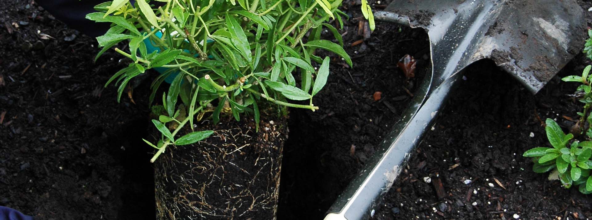 Plants establish best when they grow into your native soil. If your soil is very sandy or very heavy, blend up to one-third compost or garden soil into the backfill (don’t make a rich “pocket” at the bottom). A small handful of bone meal supports early root growth—but skip bone meal for acid-loving plants like rhododendrons, azaleas, pieris, camellias, and blueberries. Use liquid transplant fertilizer on those ones instead. Mycorrhizae inoculant can help roots partner with beneficial fungi. Save stronger feeding for after the plant settles in.